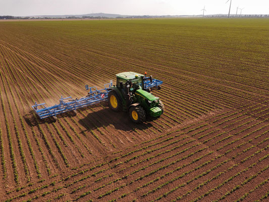 Zuckerrüben, Kartoffeln, Sojabohnen, Lupinen und Durum gedeihen auf unserern Feldern. Mit Hilfe einer Beregnungsfläche von 550 ha, haben wir die Möglichkeit auch in trockenen Jahren gute